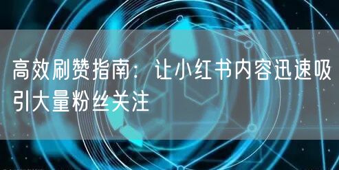 高效刷赞指南:让小红书内容迅速吸引大量粉丝关注
